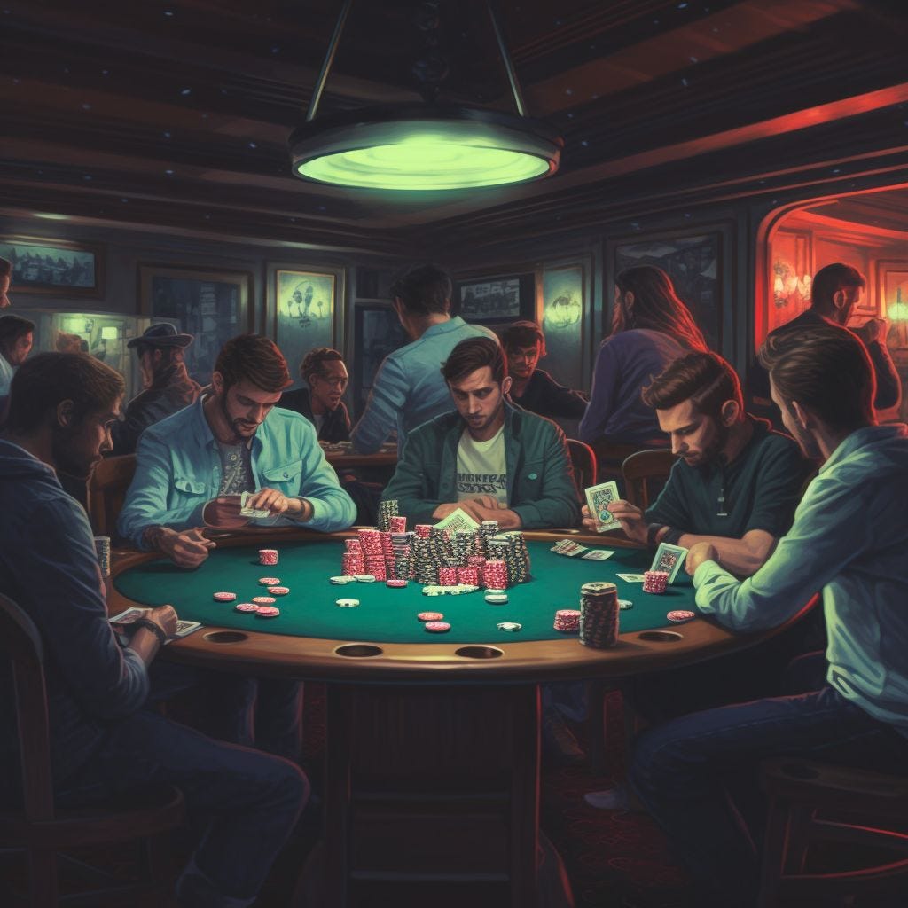 I host a poker night and needed an image for my poker night Spotify Playlist cover, so I generated the image below.
