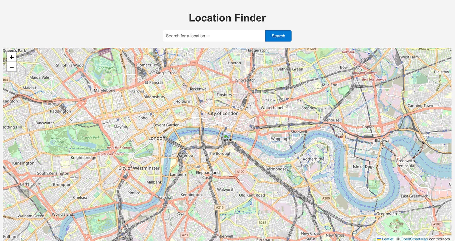 - Location Finder: Users can search for a location and see it highlighted on the map.